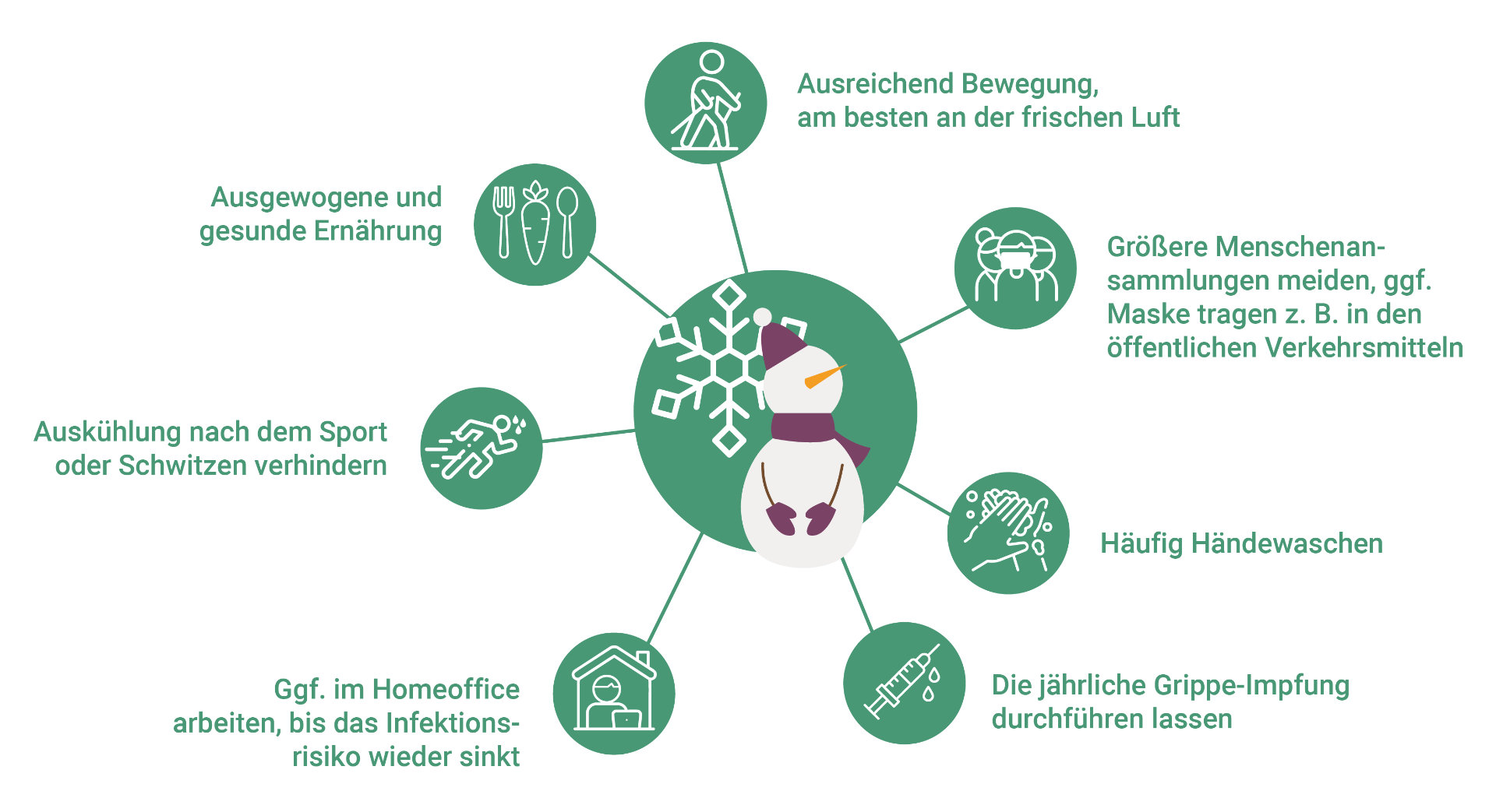 Übersichtsgrafik mit Tipps zum Schutz vor Erkältungskrankheiten im Winter