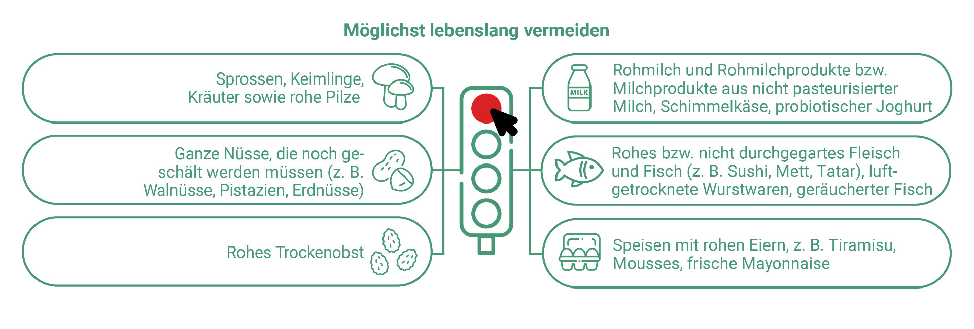 Nahrungs­mittel, die dauer­haft und zwingend vom Speise­plan gestrichen werden müssen