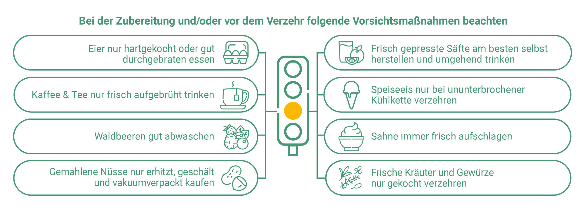 Über die Nahrung können Krankheits­erreger aufgenommen werden. Lebens­mittelkeime können für Menschen, die immunsuppressive Medikamente einnehmen, eine ernsthafte Gesund­heitsgefahr darstellen.