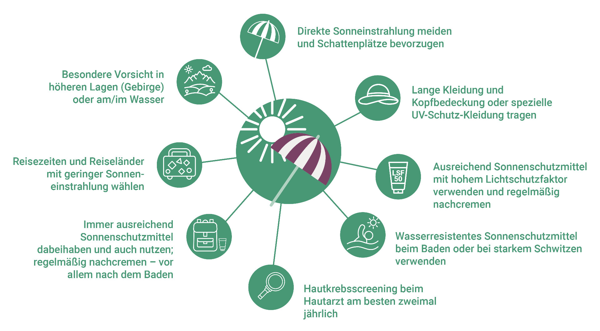 Übersichtsgrafik mit Tipps zum Sonnenschutz nach einer Nierentransplantation